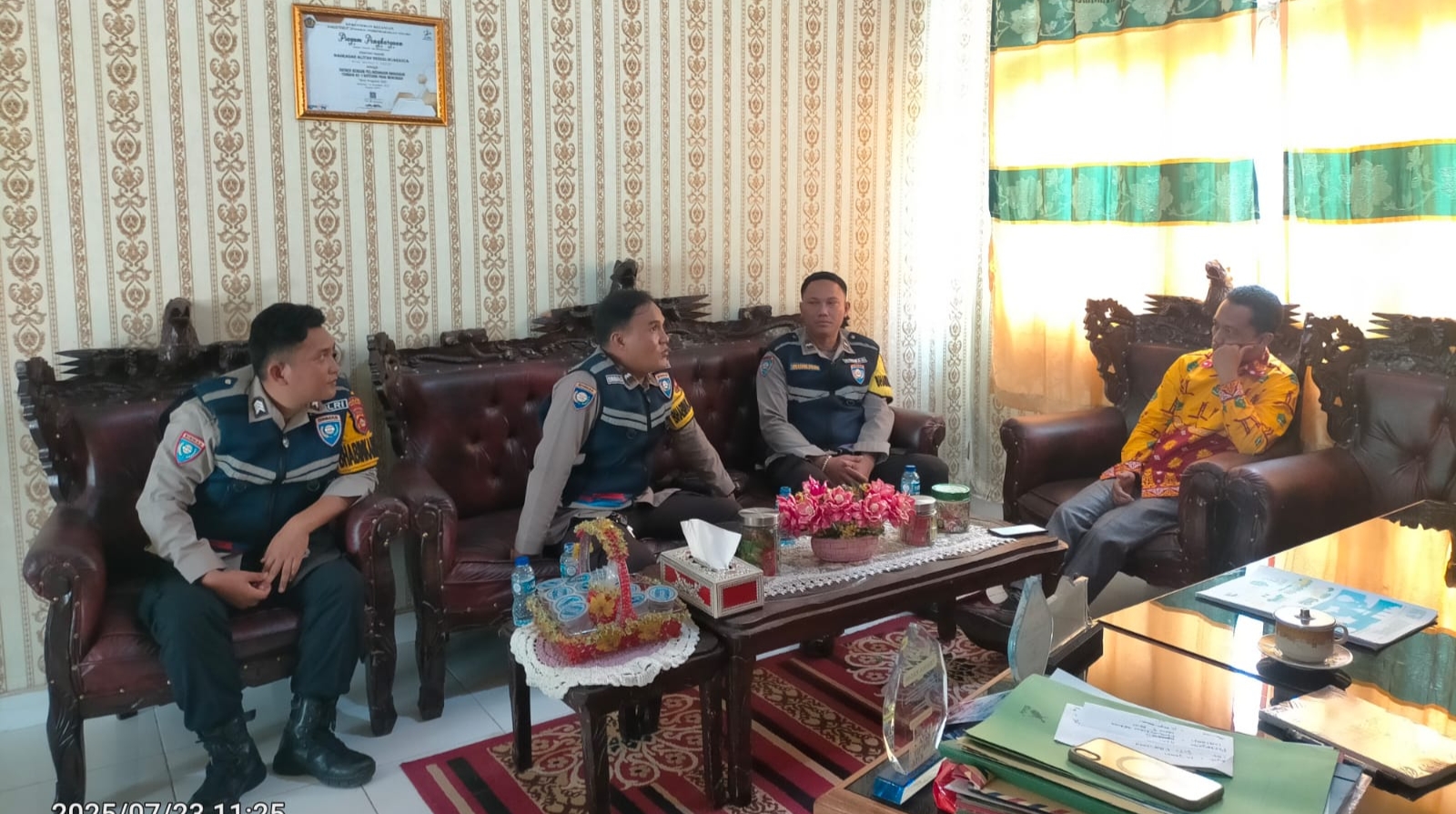 Para Bhabinkamtibmas diterima langsung oleh Kepala Sekolah, Bapak Komarudin, S.Pd., Wakil Kepala Sekolah Bidang Kesiswaan, Bapak Faisal Bahtiar, S.P.d., dan Wakil Kepala Sekolah Bidang Humas, Bapak Candra Irawan, S.P.d.
