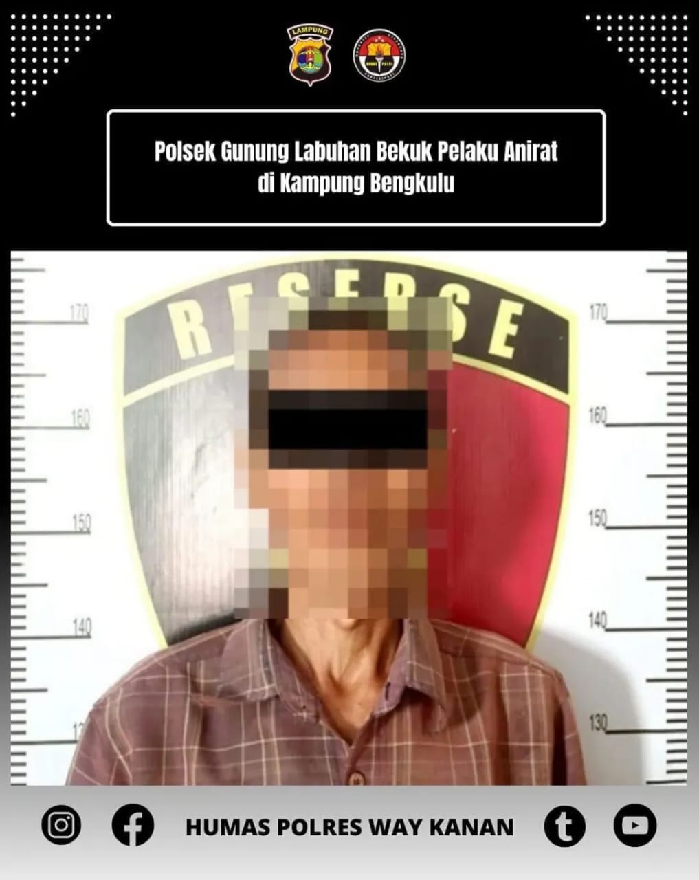 Kapolres Way Kanan AKBP Adanan Mangopang melalui Kapolsek Gunung Labuhan AKP Abdul Haris, menjelaskan kronologis kejadian anirat terjadi pada hari Jum’at tanggal 25 Juli 2025 sekitar pukul 10.00 Wib, di Dusun II Semeter Kampung Bengkulu Kecamatan Gunung Labuhan Kabupaten Way Kanan.