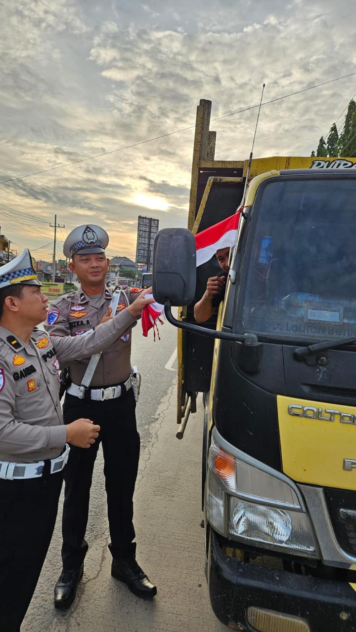 Selama kegiatan berlangsung, petugas juga selain pembagian bendera merah putih bukan hanya sebagai simbol patriotisme dan kecintaan terhadap tanah air, tetapi juga sebagai ajakan kepada masyarakat agar tetap menjaga kedisiplinan dan keselamatan dalam berlalu lintas.