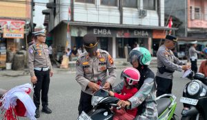 MUARADUA, matapubliknews.id – Dalam rangka menyambut peringatan Hari Ulang Tahun (HUT) ke-80 Kemerdekaan Republik Indonesia, Polres OKU Selatan menggelar kegiatan pembagian bendera Merah Putih kepada masyarakat. Kamis, 7 Agustus 2025.