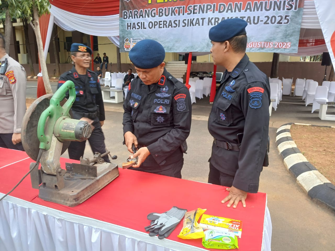 Adapun barang bukti yang dimusnahkan berupa senjata api pendek rakitan sebanyak kurang lebih 50 pucuk. Selebihnya, senjata yang masih terkait proses penyidikan dikembalikan ke masing-masing Satwil jajaran untuk kepentingan perkara.