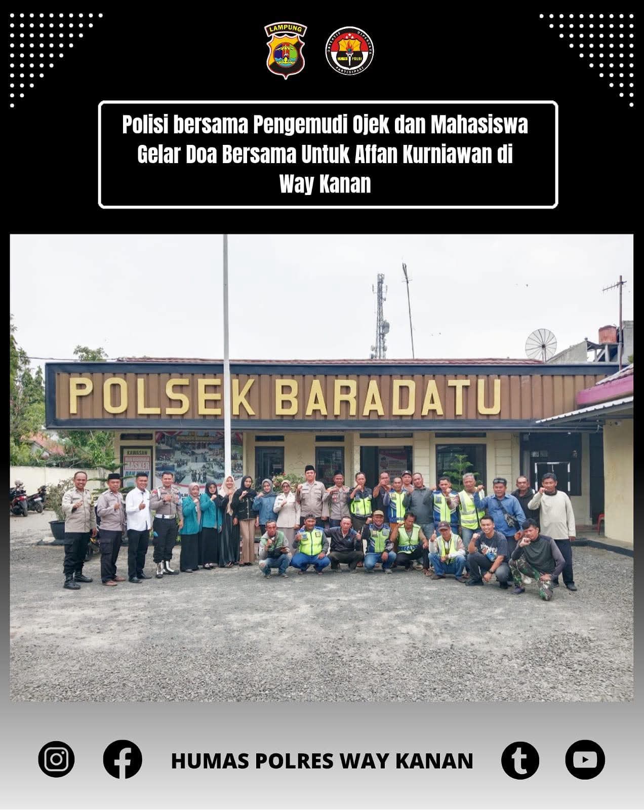 Polisi bersama Pengemudi Ojek dan Mahasiswa Gelar Doa Bersama, Untuk Affan Kurniawan di Way Kanan