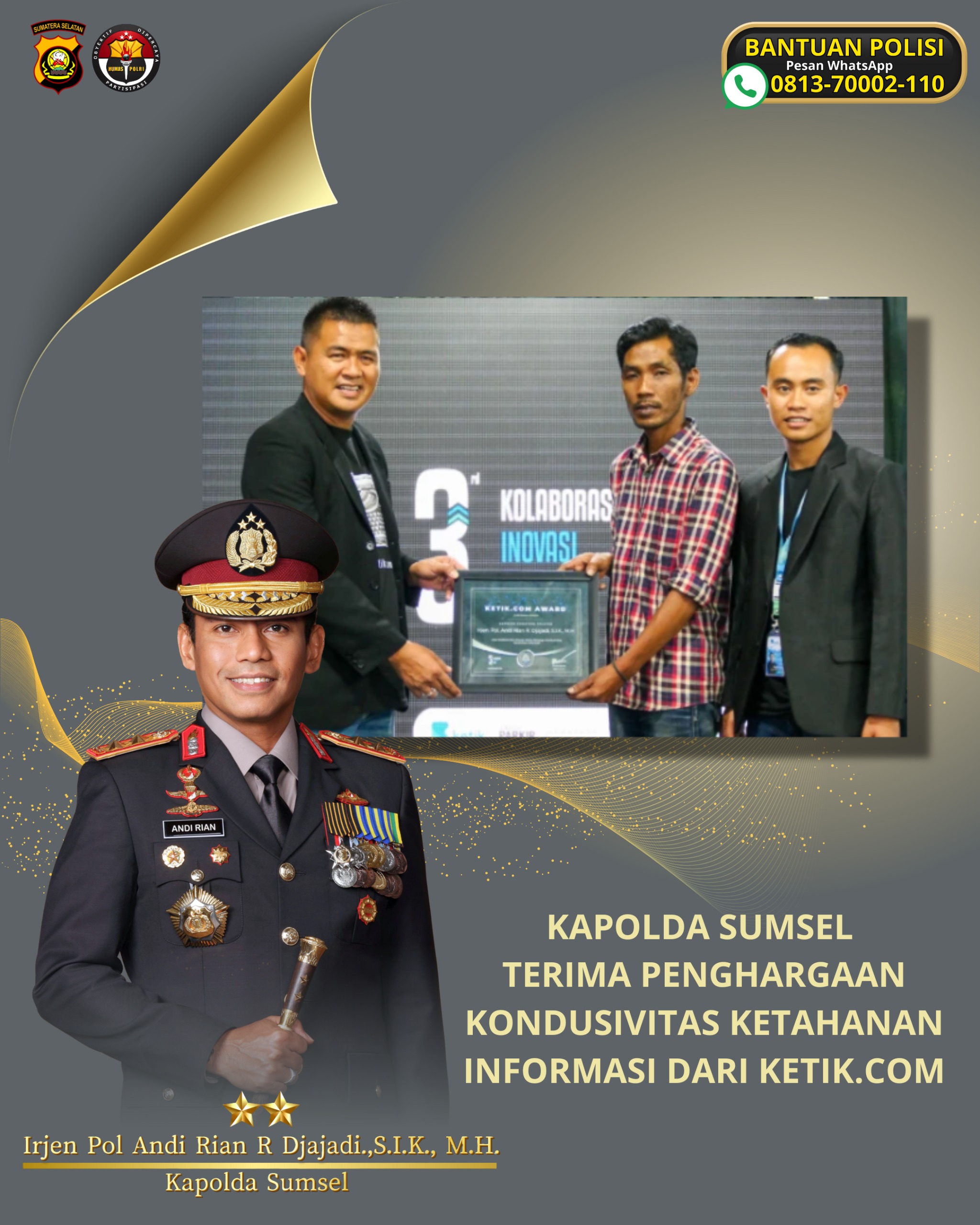 Penghargaan ini diberikan atas dedikasi tinggi dan kinerja luar biasa, dalam menjaga kondusivitas serta ketahanan informasi di wilayah Sumatera Selatan.