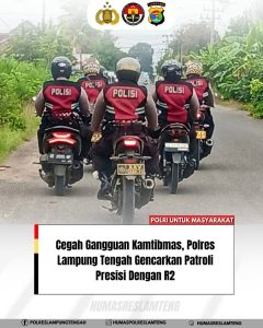 Cegah Gangguan Kamtibmas, Polres Lampung Tengah Gencarkan Patroli Presisi Dengan R2