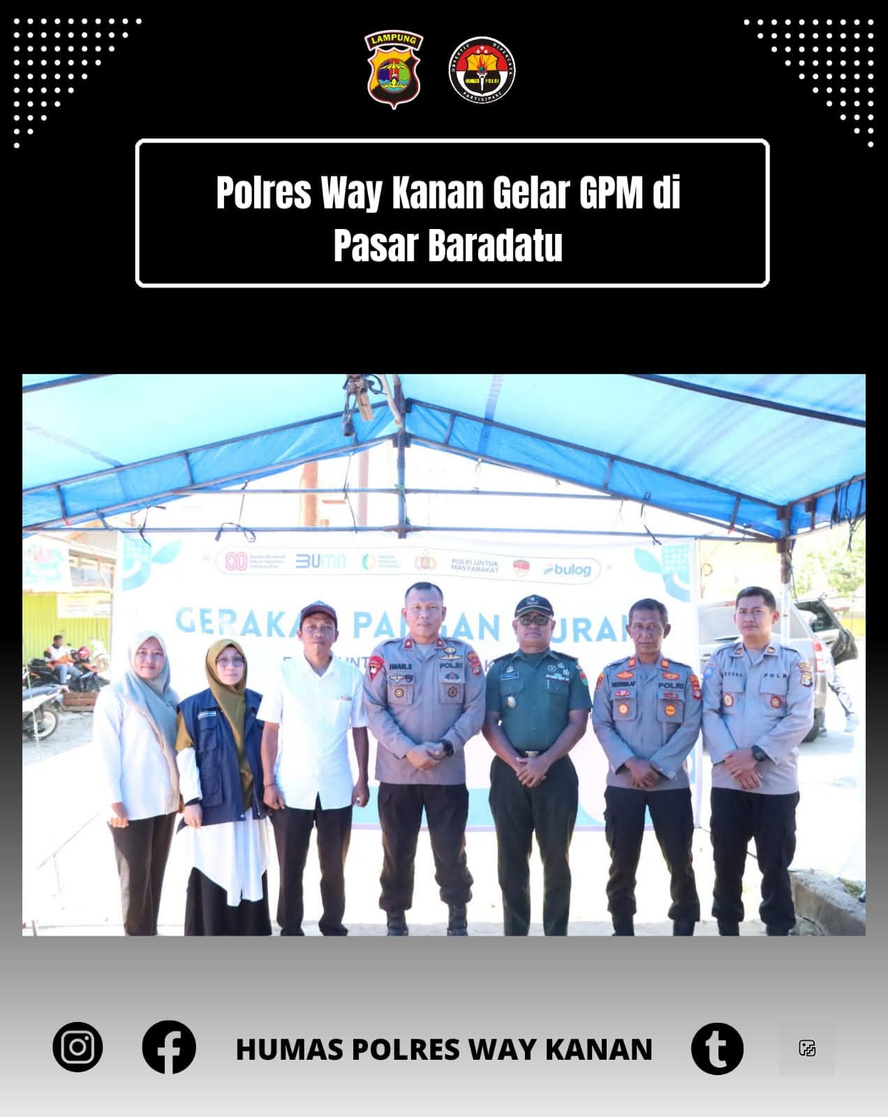 Kapolres Way Kanan AKBP Adanan Mangopang melalui Wakapolres Way Kanan Kompol Iwan Setiawan menyampaikan, tujuan Gerakan Pangan Murah ini untuk mendukung program pemerintah dalam menstabilkan pasokan dan harga pangan.