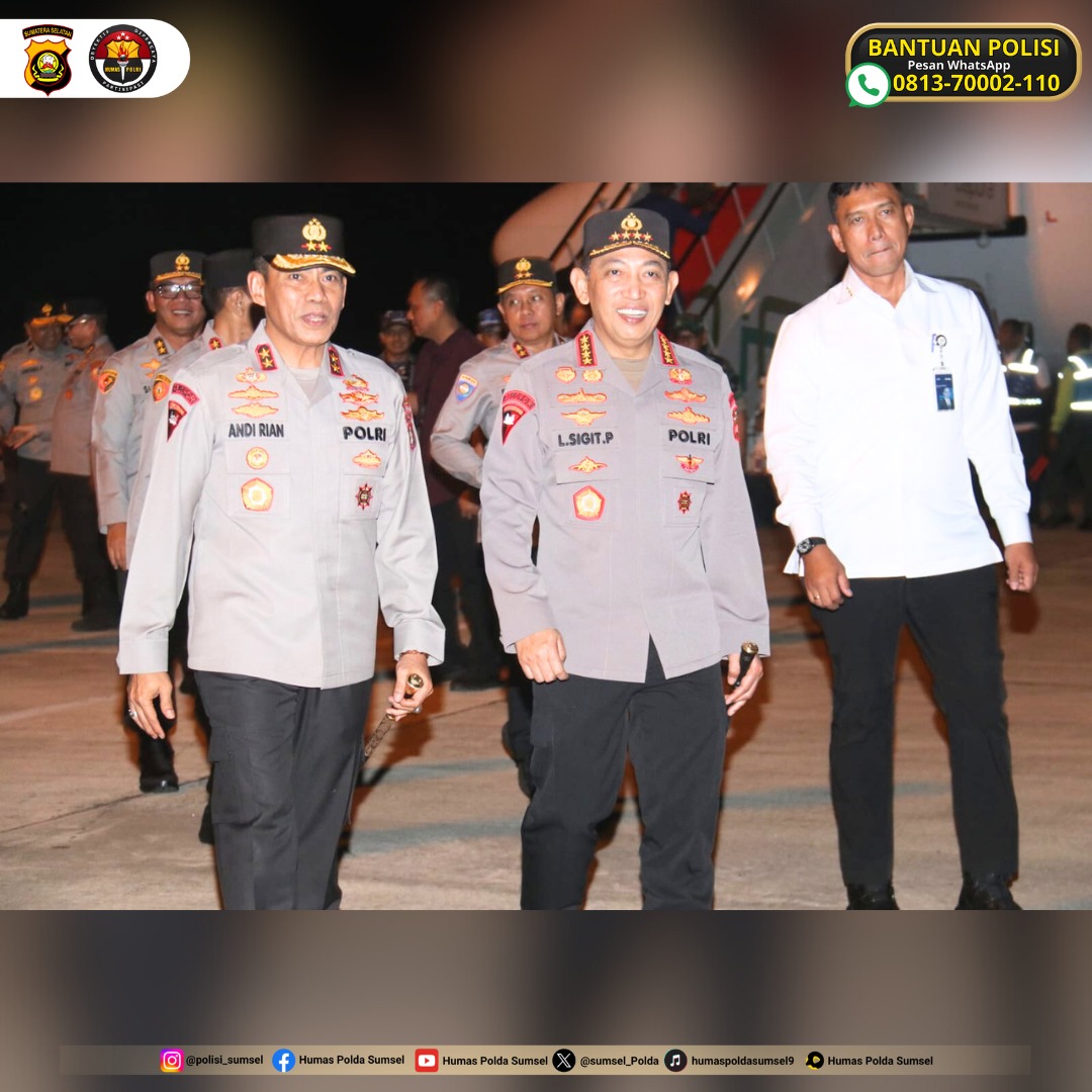 PALEMBANG, matapubliknews.id – Kapolri Jenderal Polisi Drs. Listyo Sigit Prabowo, M.Si., yang juga merupakan Kepala Kepolisian Republik Indonesia, melakukan kunjungan kerja ke Kota Palembang, Sumatera Selatan, dan tiba melalui layanan VVIP Bandara Sultan Mahmud Badaruddin (SMB) II, sekitar pukul 18:27 Wib, pada Jumat malam, 26 September 2025.