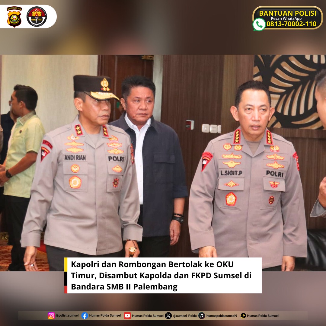 PALEMBANG, matapubliknews.id – Kapolri Jenderal Polisi Drs. Listyo Sigit Prabowo, M.Si., didampingi oleh sejumlah pejabat utama Mabes Polri, melakukan kunjungan kerja ke Kabupaten Ogan Komering Ulu (OKU) Timur, Provinsi Sumatera Selatan, pada Sabtu, 27 September 2025.