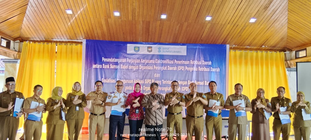 Kegiatan ini juga ditandai dengan penandatanganan kerja sama elektronifikasi penerimaan retribusi daerah antara Bank Sumsel Babel dan 13 OPD pengelola retribusi.