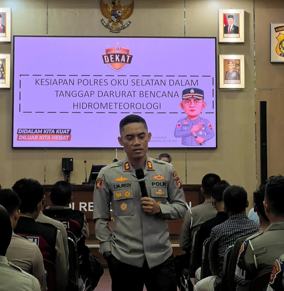 Kegiatan ini berlangsung di Aula Sertu Pol Anumerta Hadinata Polres OKU Selatan, menjadi saksi berlangsungnya kegiatan arahan penting terkait tanggap darurat bencana meteorologi di wilayah hukum Polres OKU Selatan.