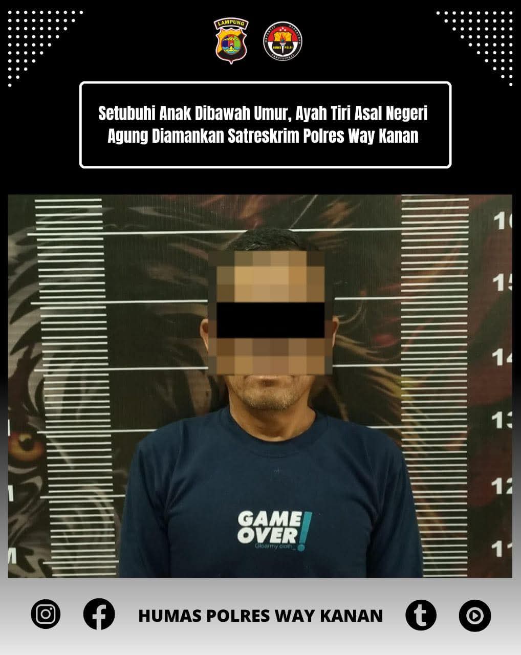 WAY KANAN, matapubliknews.id – Seorang pria berinisial DR (46) asal Negeri Agung, Way Kanan diamankan Unit PPA Satreskrim Polres Way Kanan Polda Lampung karena diduga melakukan persetubuhan terhadap anak tirinya yang masih dibawah umur. Minggu, 9 November 2025.