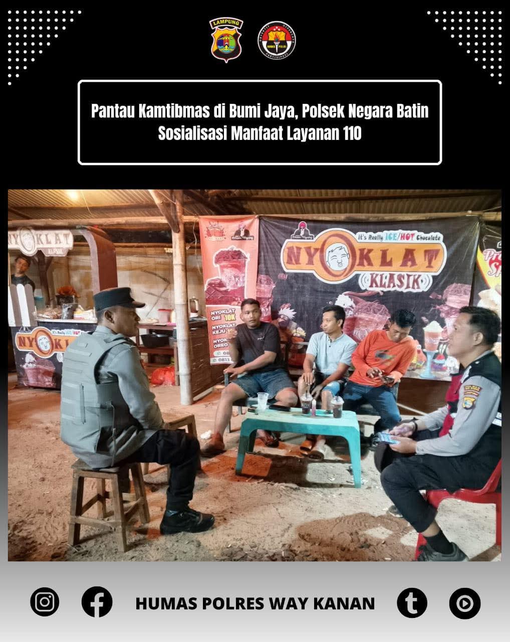 Kapolres Way Kanan AKBP Adanan Mangopang melalui Kapolsek Negara Batin Iptu Indra Kirana mengatakan, kegiatan ini kami lakukan dengan tujuan untuk mencegah niat seseorang melakukan kejahatan dan memantau perkembangan situasi Kamtibmas,” jelasnya.