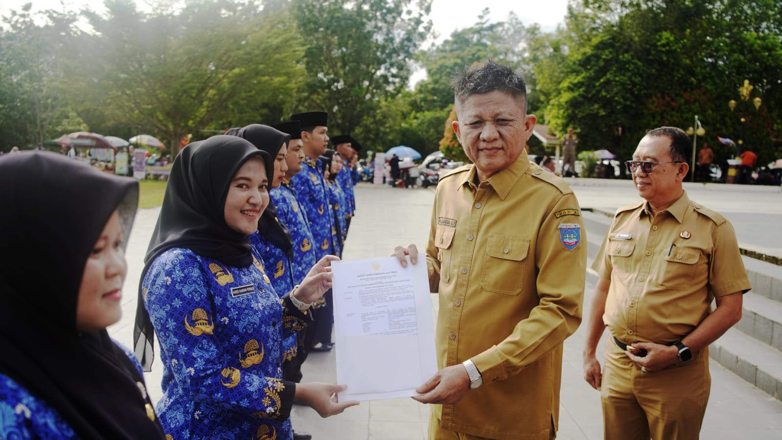 Laporan Kepala BKPSDM, Sutikman, S.Pd., M.M., menyampaikan jumlah peserta yang diangkat sebagai PPPK Paruh Waktu sebanyak 4.157 orang.