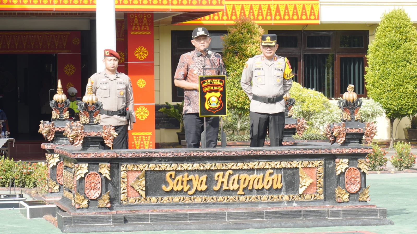 Dalam kesempatan ini Bupati OKU Timur membacakan amanat Kepala Kepolisian Republik Indonesia Jenderal Polisi Drs. Listyo Sigit Prabowo, M.Si., dimana sebelum pembacaan amanat tersebut Bupati OKU Timur mengajak seluruh peserta apel untuk menundukkan kepala mendoakan korban bencana alam yang terjadi di Sumatera dan wilayah lain di Indonesia.