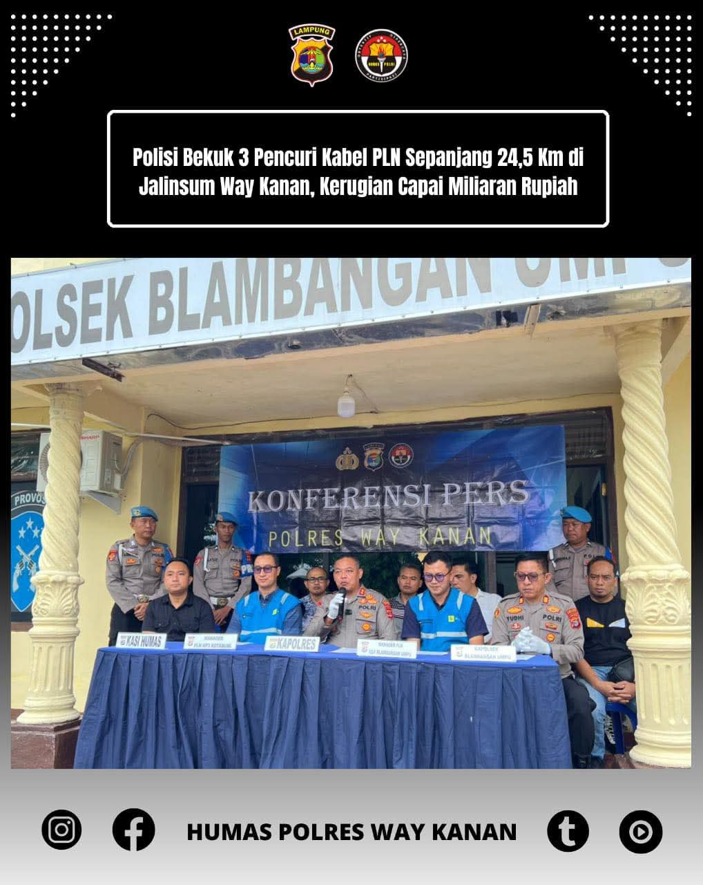 Para pelaku akhirnya mengakui perbuatanya telah mencuri kabel listrik milik PT. PLN yang berada di Jalinsum Kampung Gunung Sangkaran, Kabupaten Way Kanan.