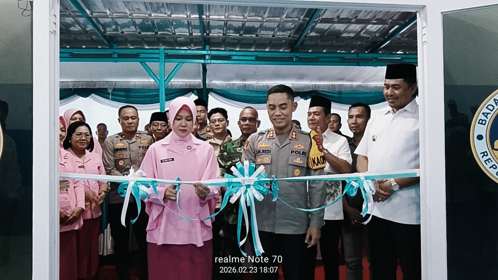 Puncak acara diwarnai momen penuh simbolik ketika Kapolres OKU Selatan bersama Bupati dan Wakil Bupati secara resmi memotong pita dapur, menandai diresmikannya fasilitas yang akan menjadi pusat penyediaan gizi bagi masyarakat khususnya di Kecamatan Simpang.