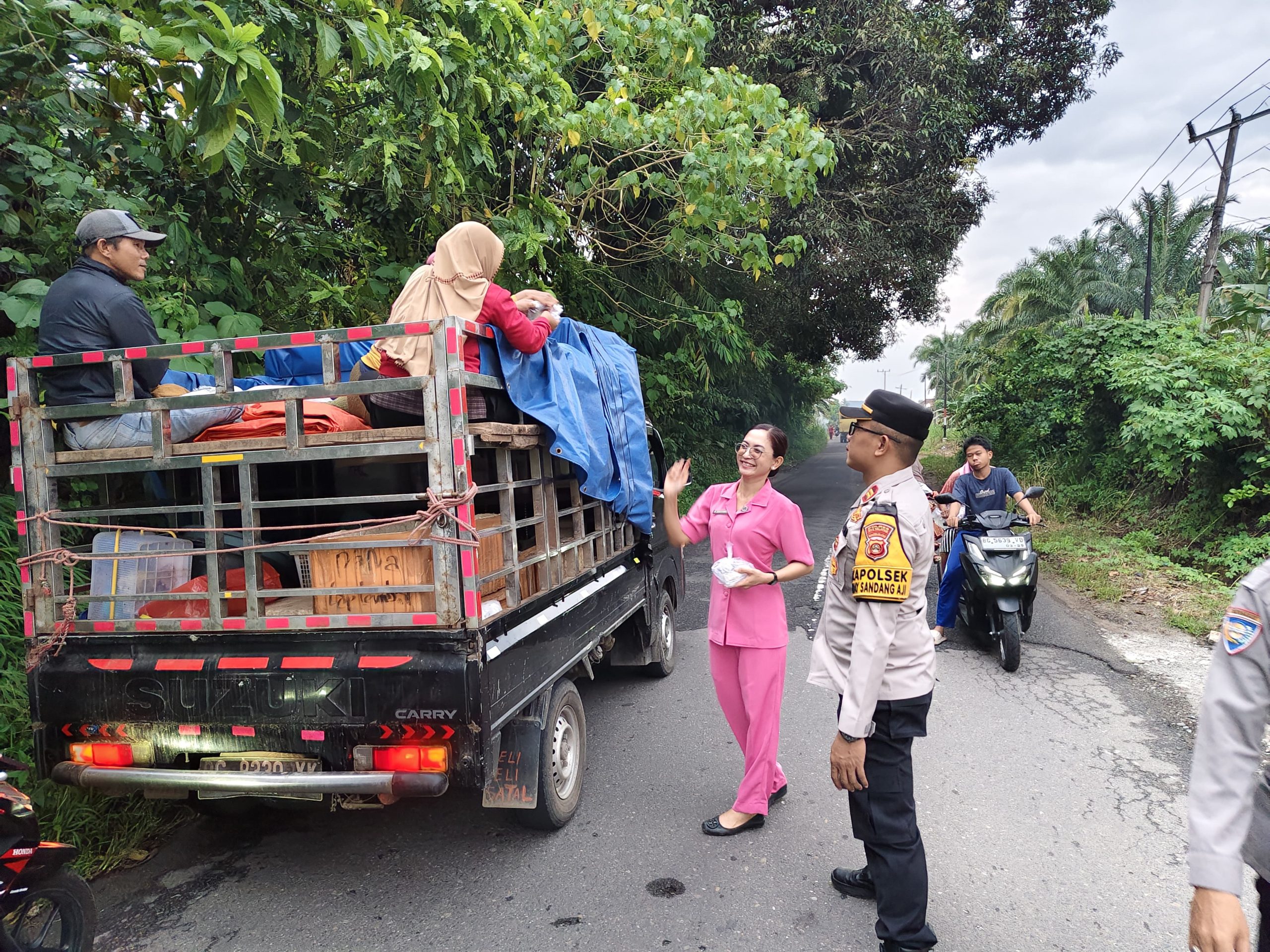 Polsek Buay Sandang Aji bekerja sama dengan Bhayangkari Ranting Polsek Buay Sandang Aji, melaksanakan kegiatan pembagian takjil gratis kepada para pengendara, yang melintas di depan Mapolsek Buay Sandang Aji, Desa Gunung Terang, Kecamatan Buay Sandang Aji, Kabupaten OKU Selatan.