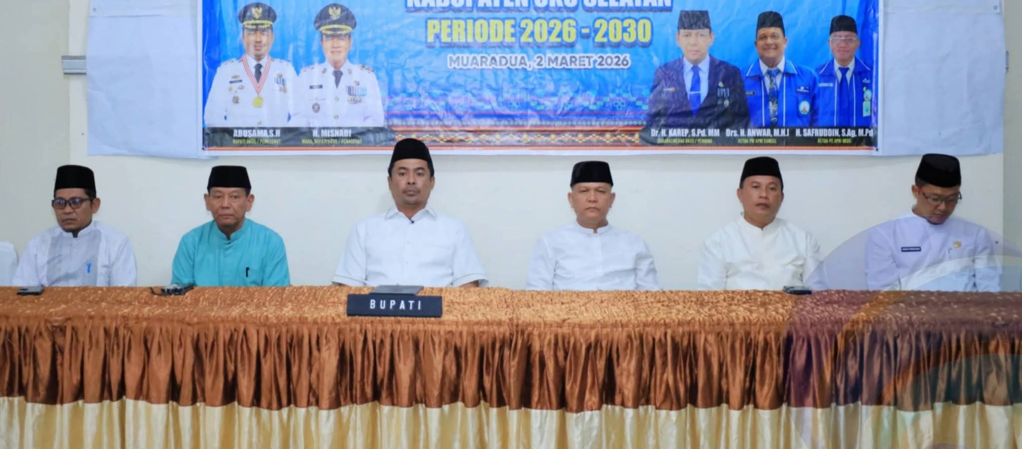 MUARADUA, matapubliknews.id – Bupati Ogan Komering Ulu Selatan (OKUS) Abusama, S.H., menghadiri sekaligus mengukuhkan Pengurus Cabang Asosiasi Penghulu Republik Indonesia (APRI) Kabupaten Ogan Komering Ulu Selatan periode 2026–2030. Kegiatan tersebut berlangsung di Pendopo Hotel Samudera Muaradua, Senin 2 Februari 2026.