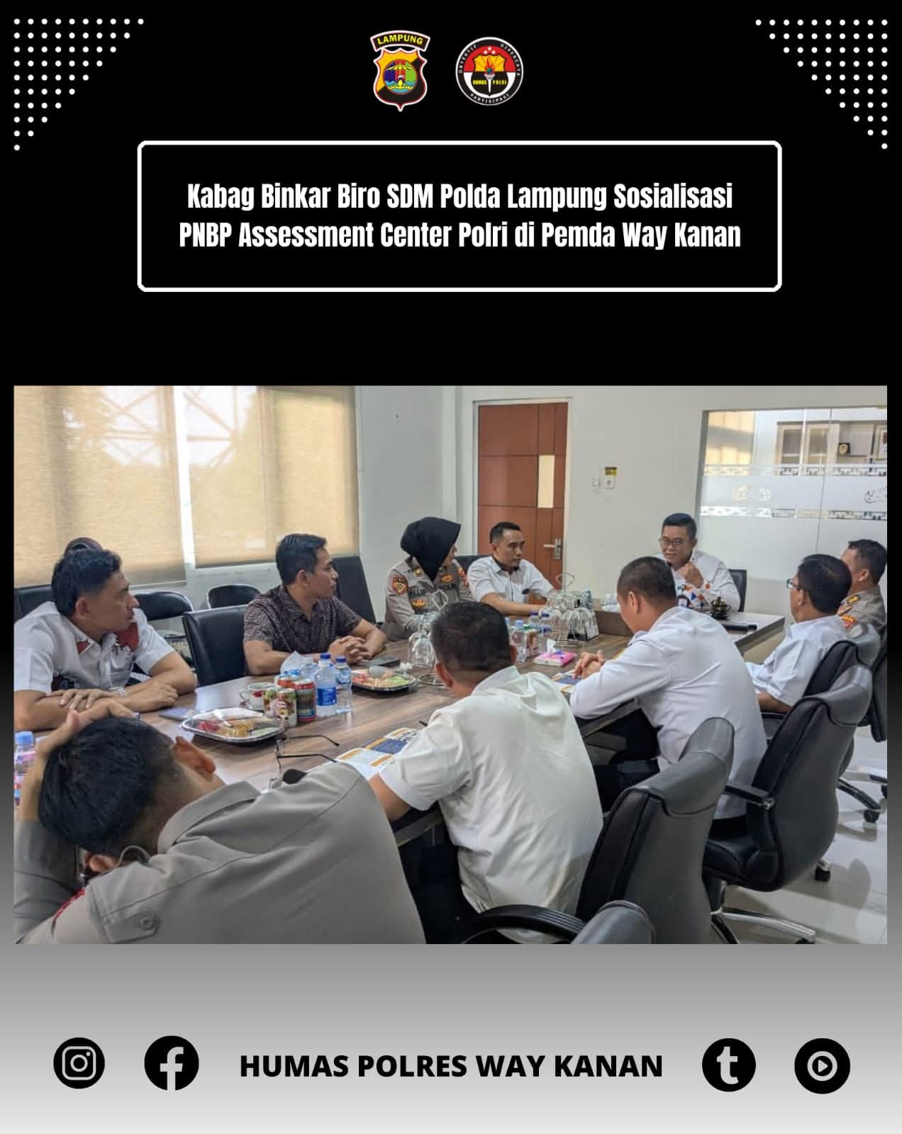 WAY KANAN, matapubliknews.id – Biro Sumber Daya Manusia (SDM) Polda Lampung menggelar sosialisasi PNBP Assessment Center POLRI kepada Pemerintah Kabupaten Way Kanan pada Rabu, 15 April 2026.