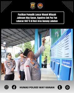 Tag: 1. Kapolres Way Kanan ​ 2. Pos Yan Lebaran ​ 3. Operasi Ketupat Krakatau ​ 4. Pemudik ​ 5. Call Center 110