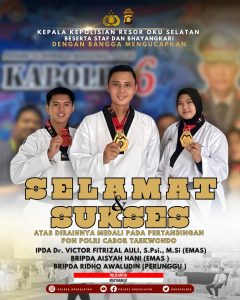Prestasi Gemilang! Personel Polres OKU Selatan Sabet Medali Emas, Perak, Perunggu di Pon Taekwondo Kapolri Cup 6